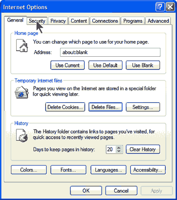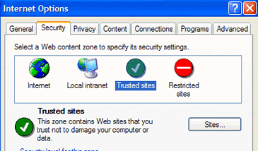 2.   Click the "Security" tab and choose the "Trusted Sites" icon.